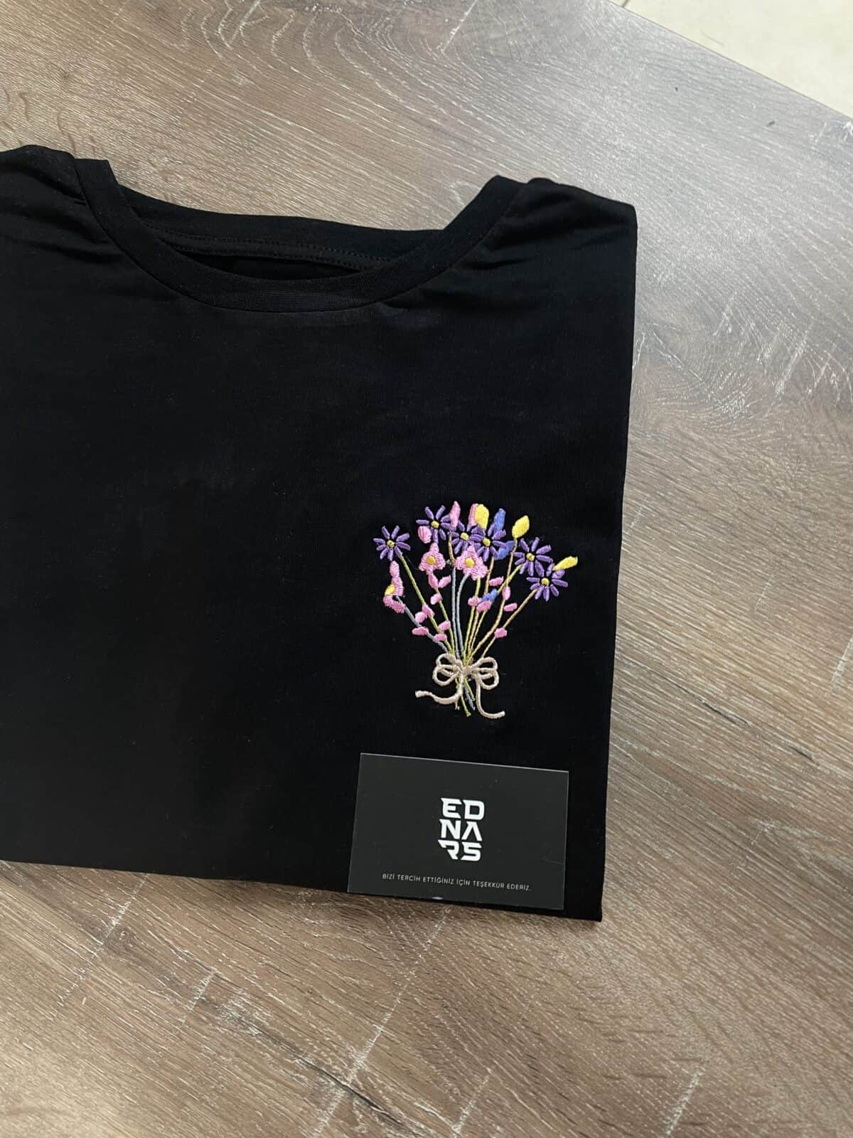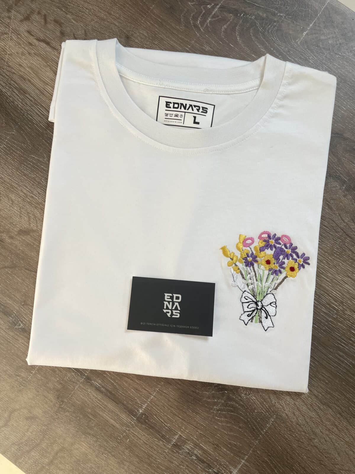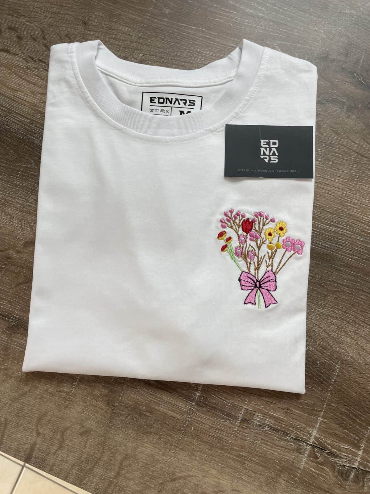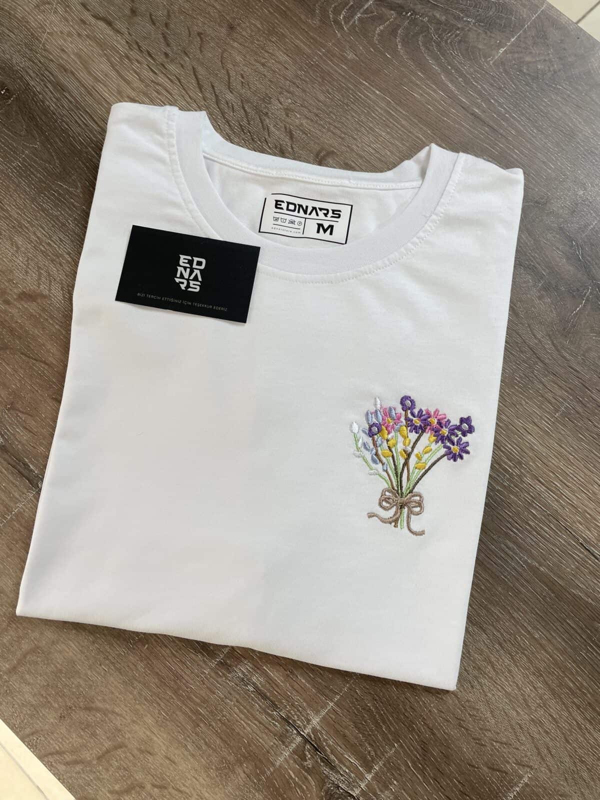 Adınız Harfleri ile Çiçek Buketi Nakış İşleme Tişört