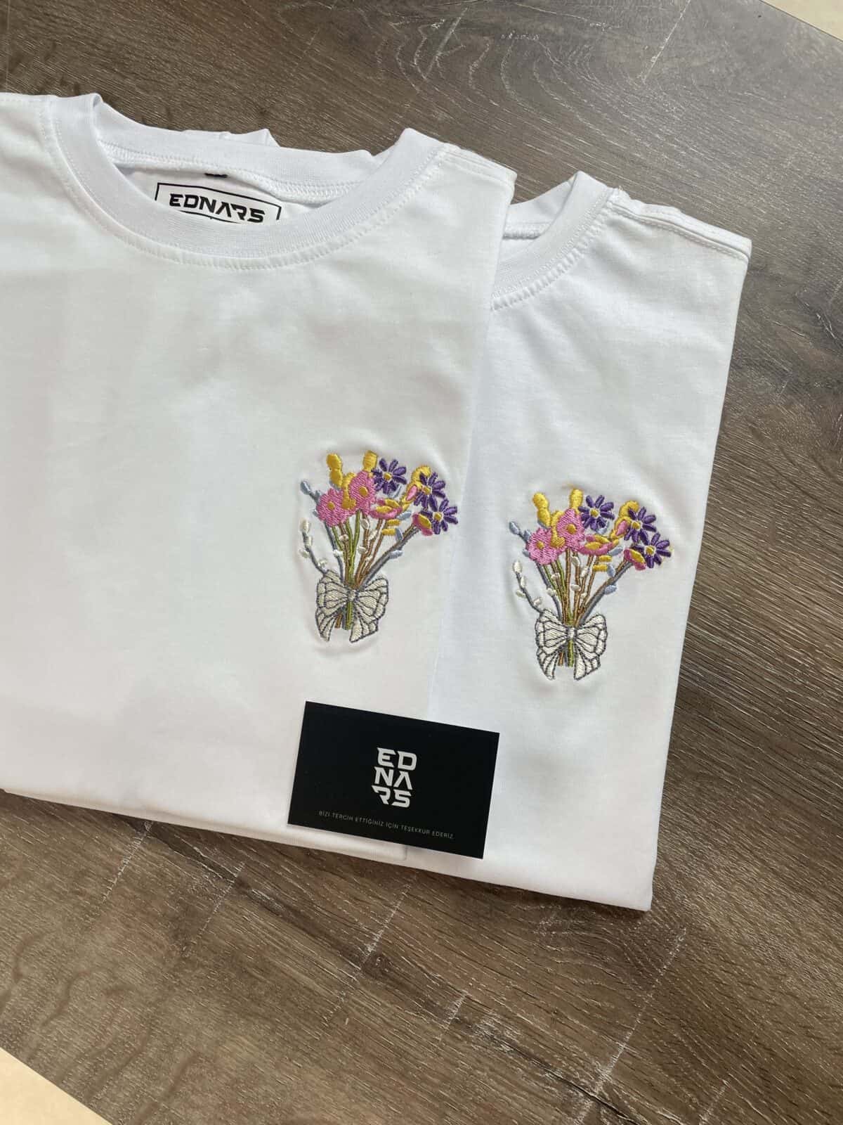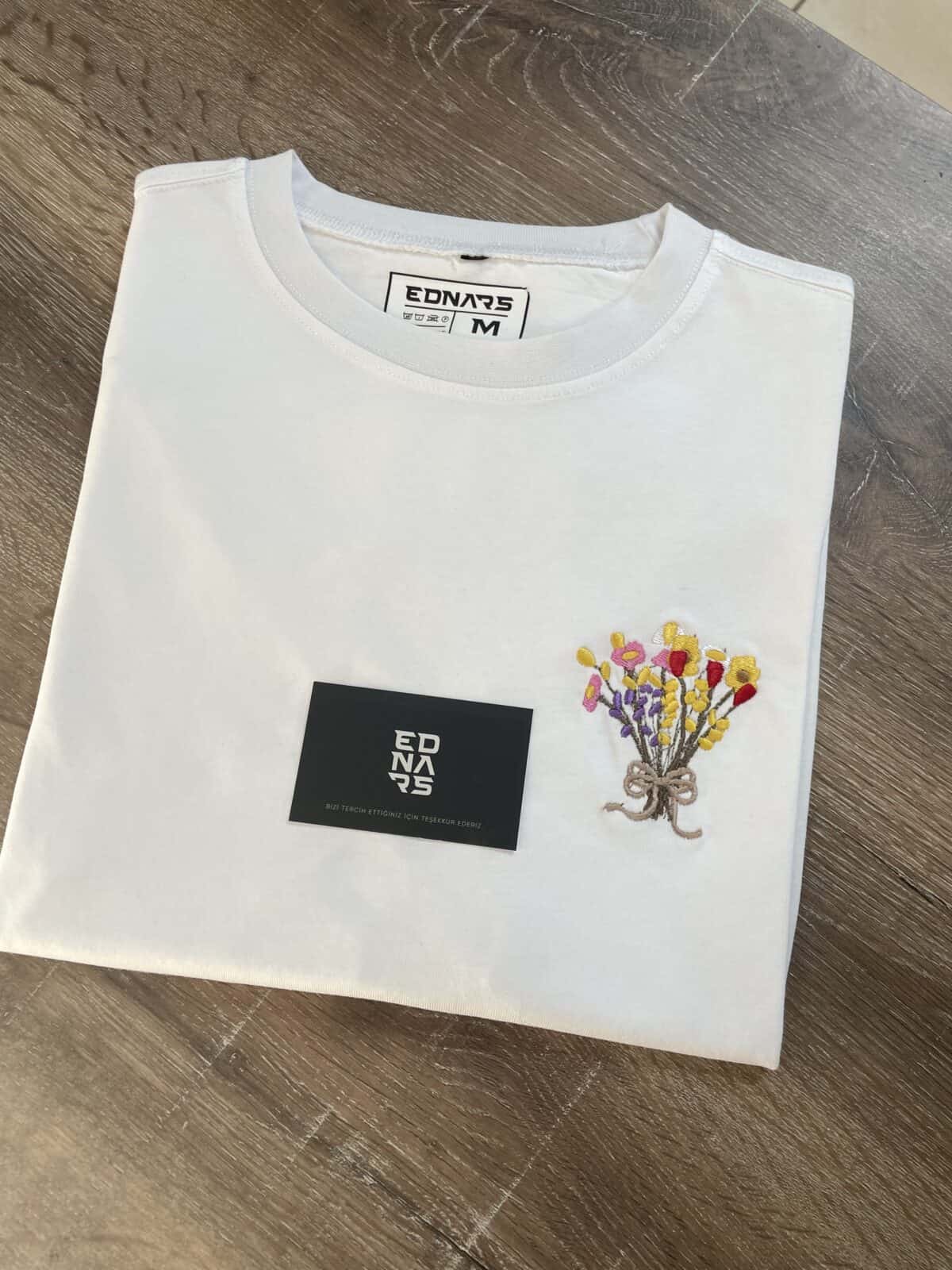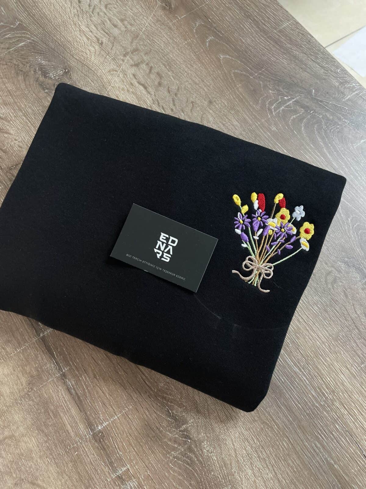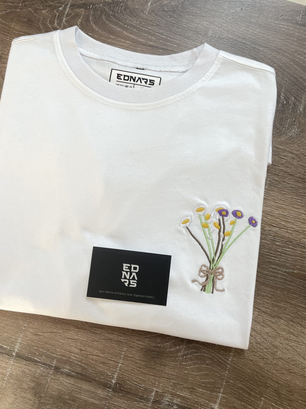 Adınız Harfleri ile Çiçek Buketi Nakış İşleme Tişört