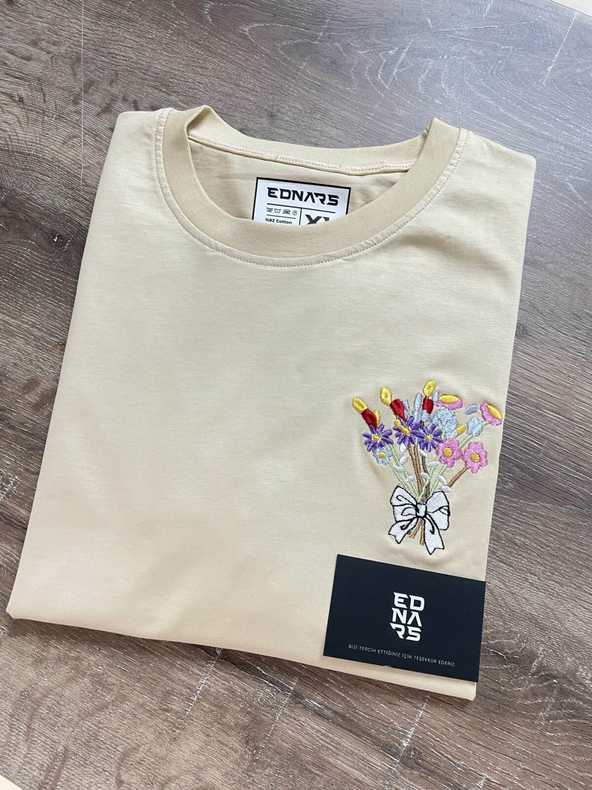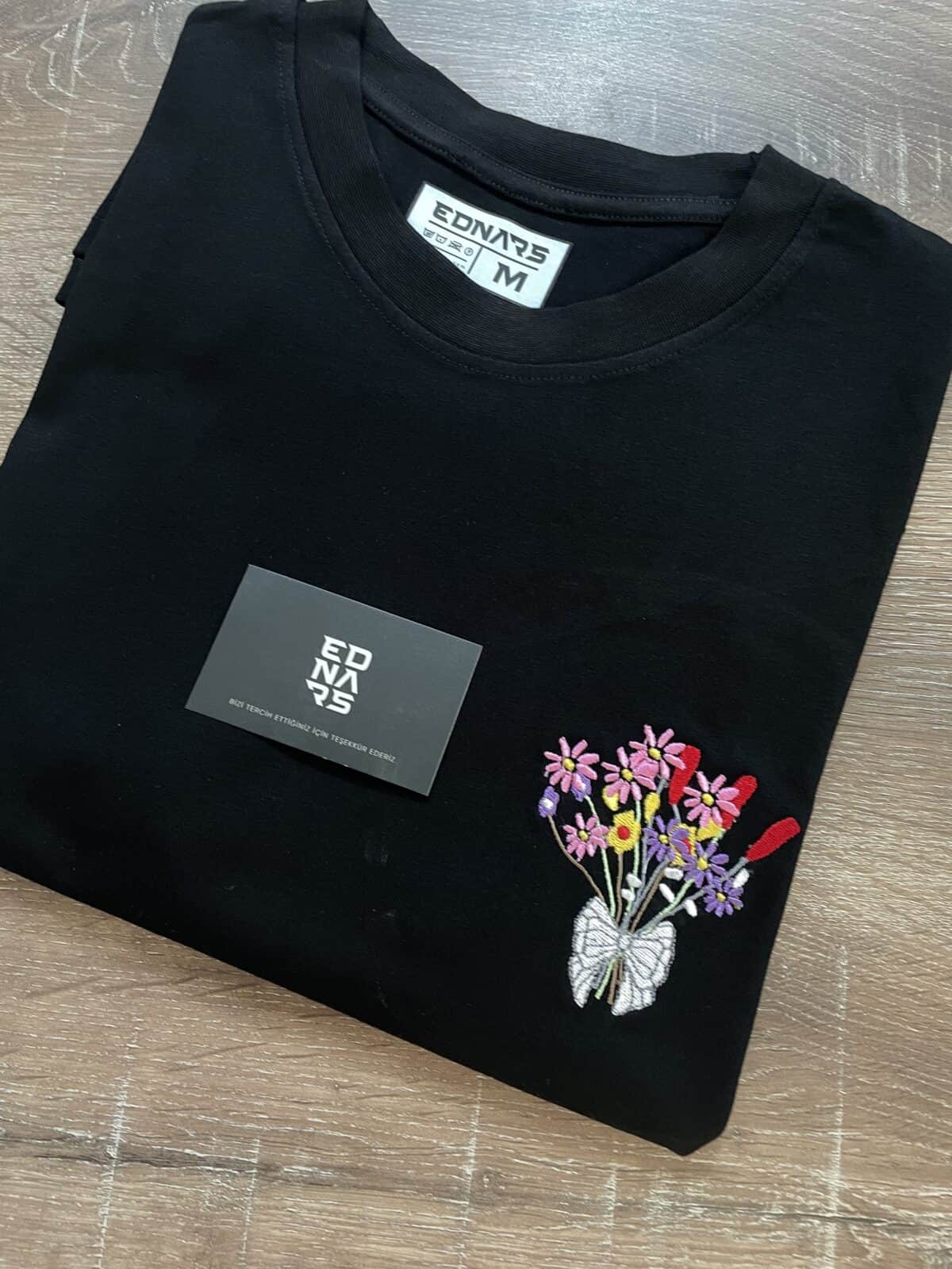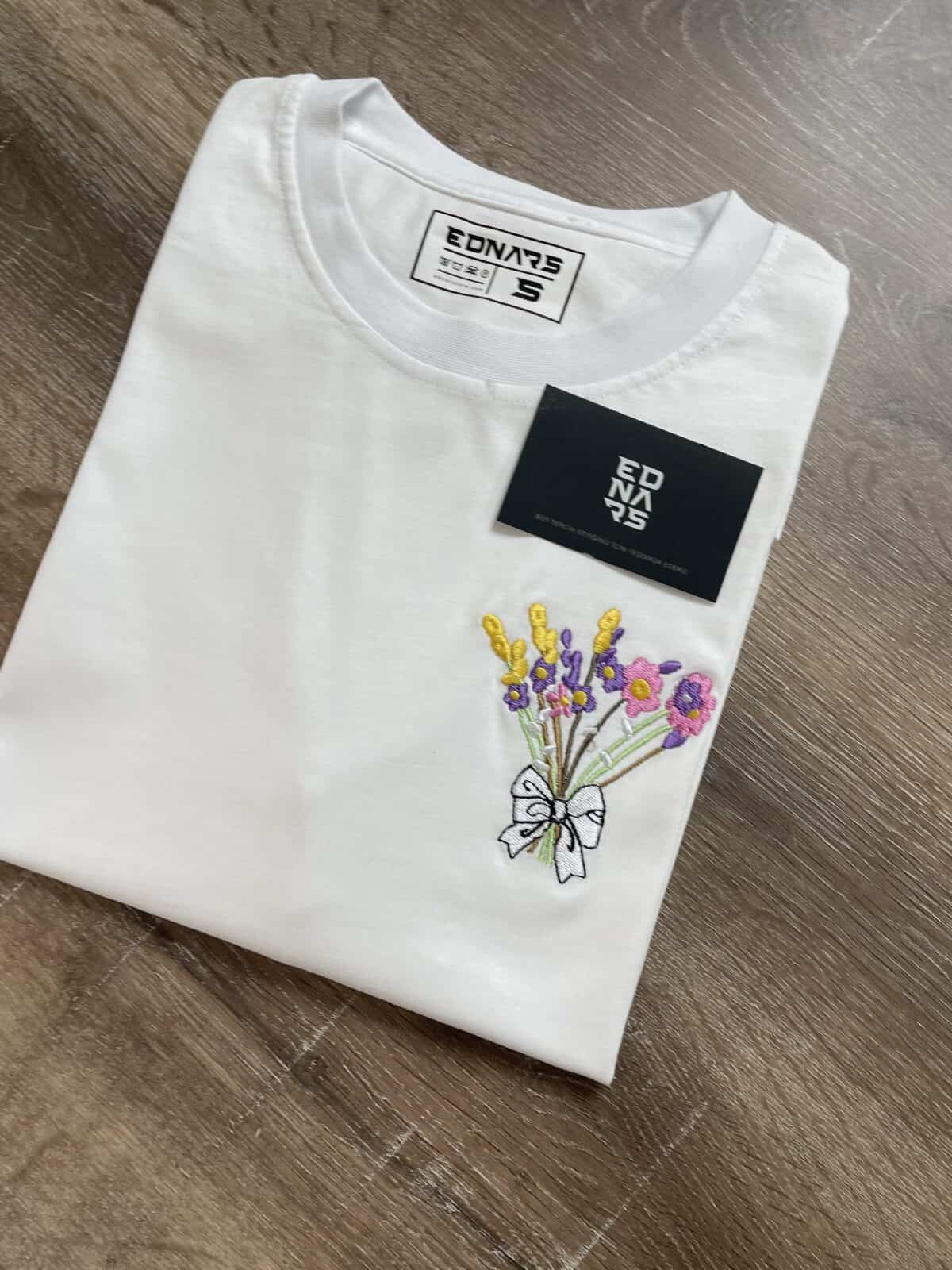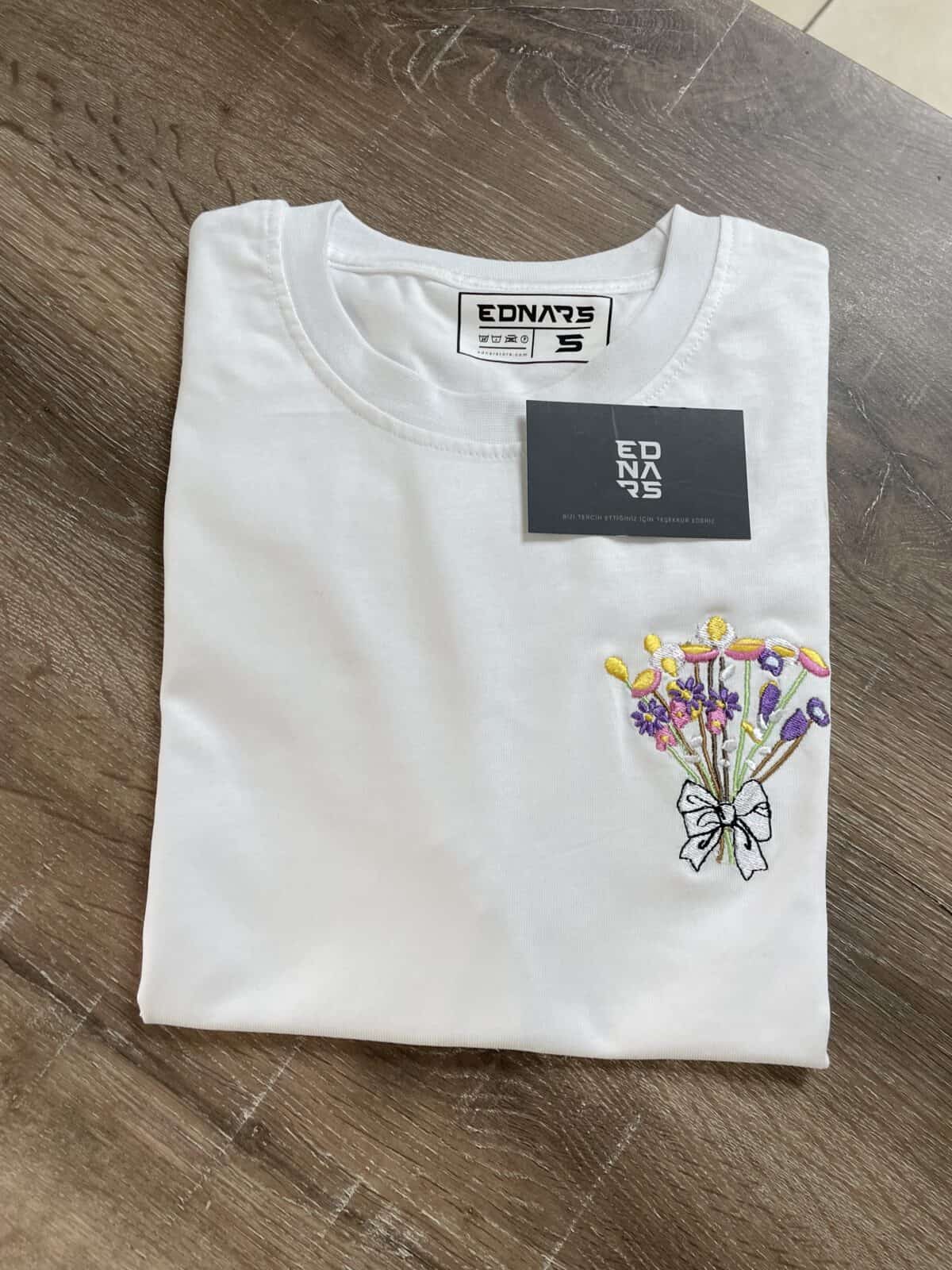 Adınız Harfleri ile Çiçek Buketi Nakış İşleme Tişört