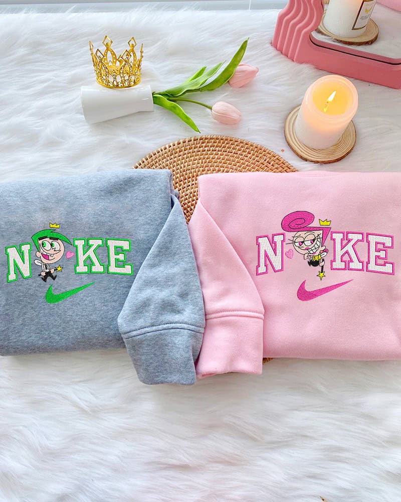 Ailem Bir Acayip Cosmo ve Wanda Çift Nakış Işleme Örme Sweatshirt.