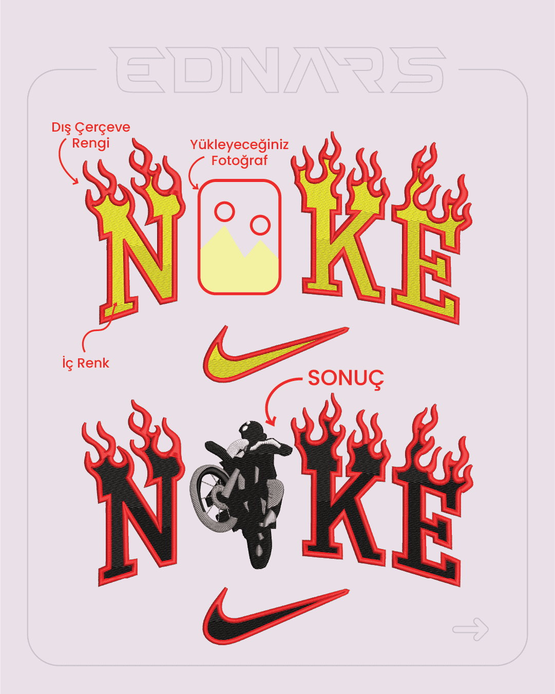 Ateş NXKE Özel Fotoğraf Nakış İşleme T shirt
