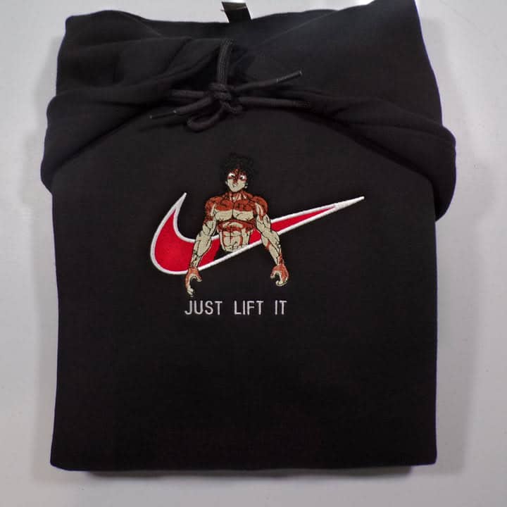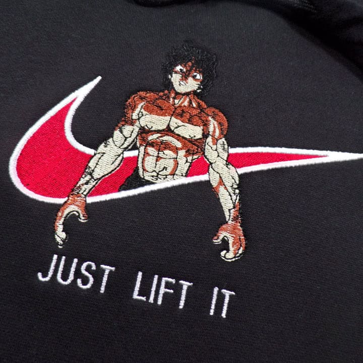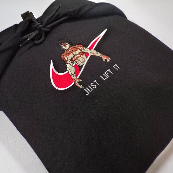 BAKI THE GRAPPLER HANMA X JUST LIFT IT Nakış Işleme Örme Sweatshirt.