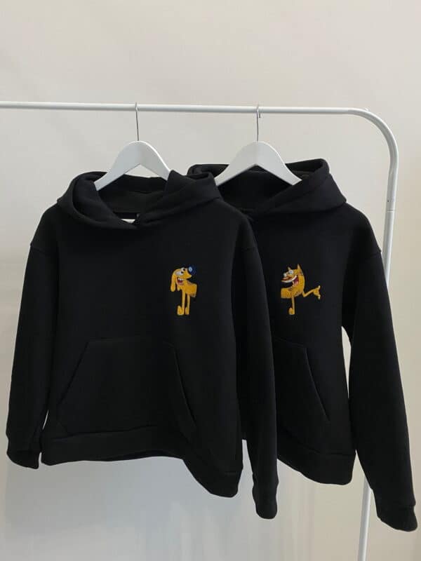 CatDog Çift Nakış Işleme Örme Hoodie.