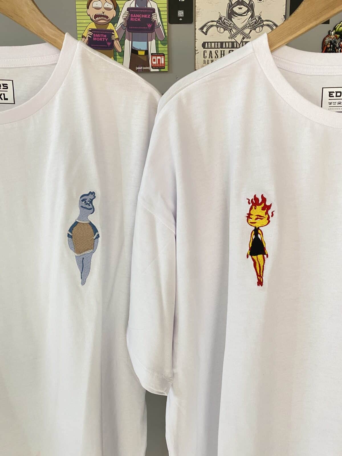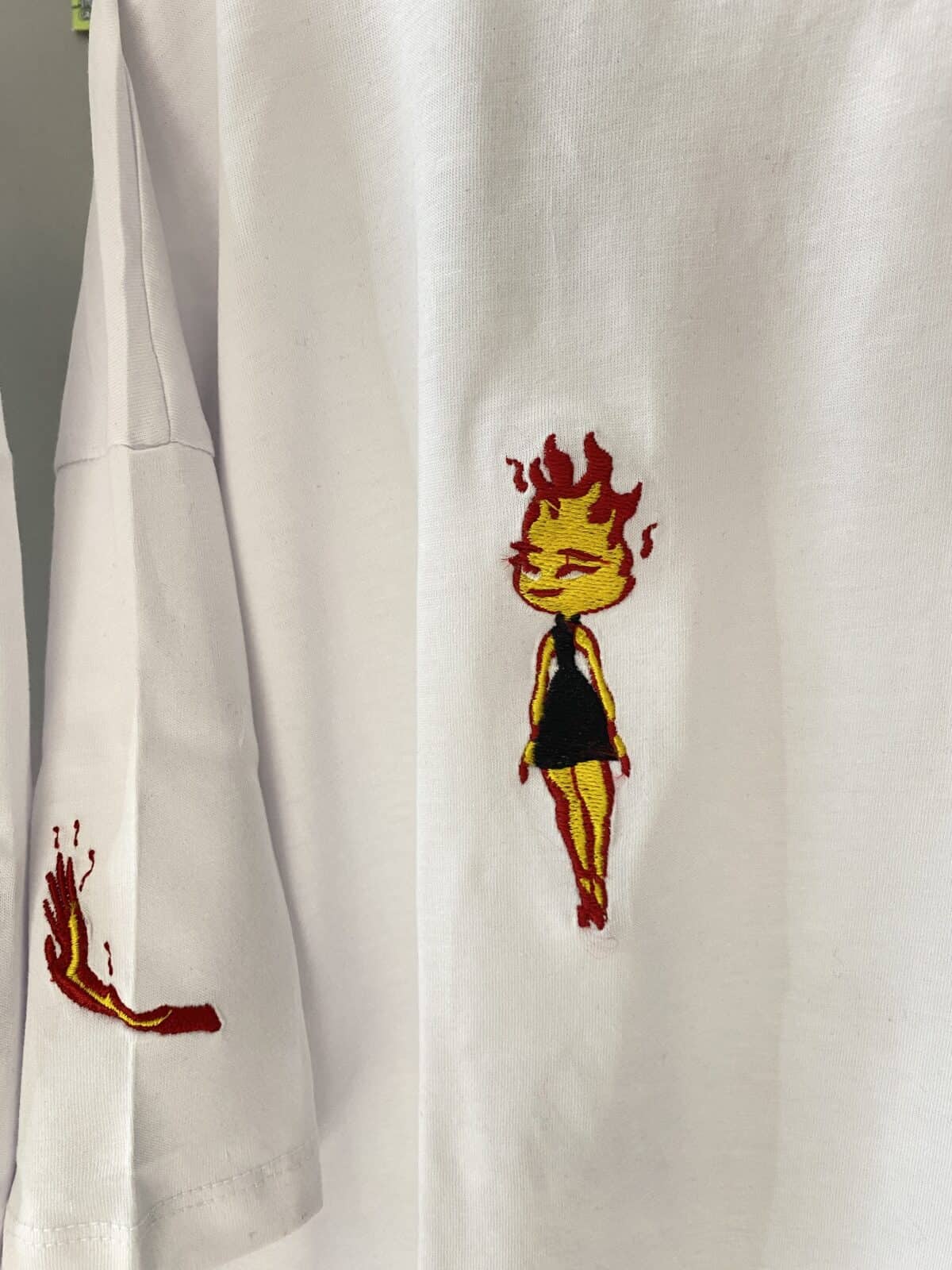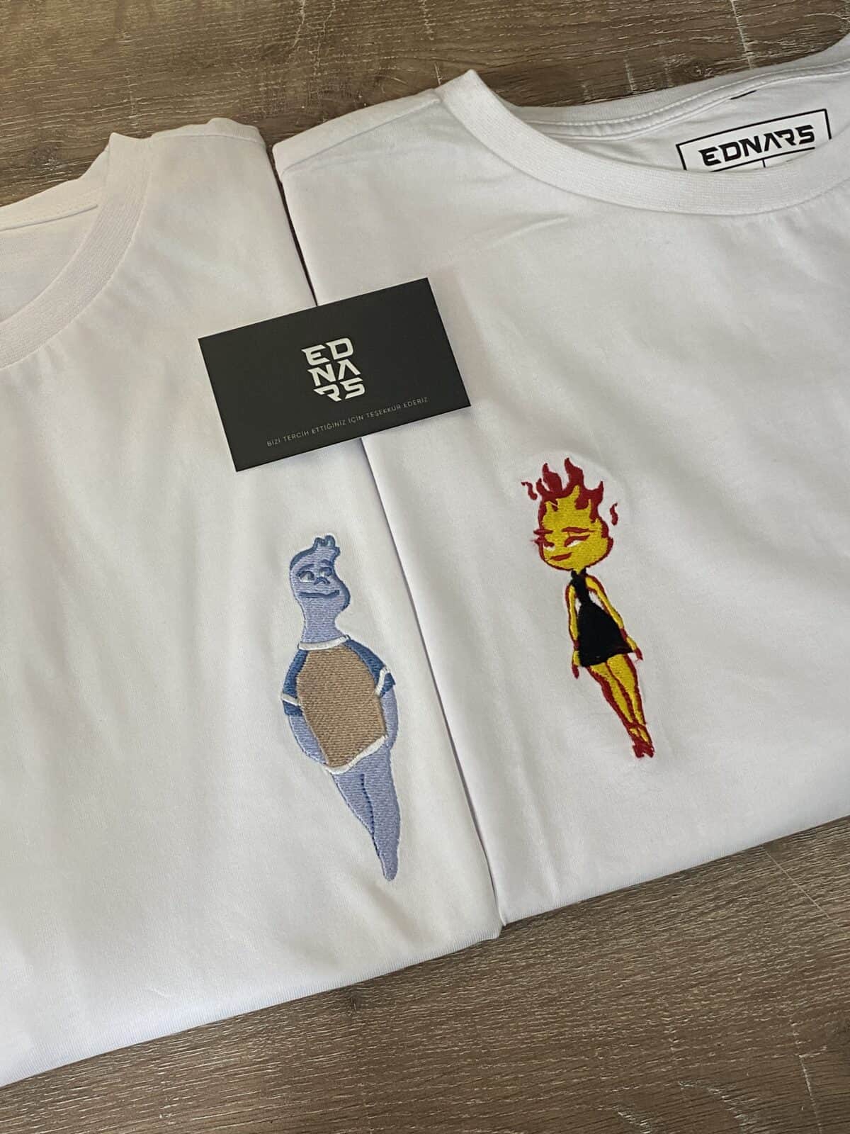 Elemental Ember ve Wade Çift Nakış Işleme T shirt