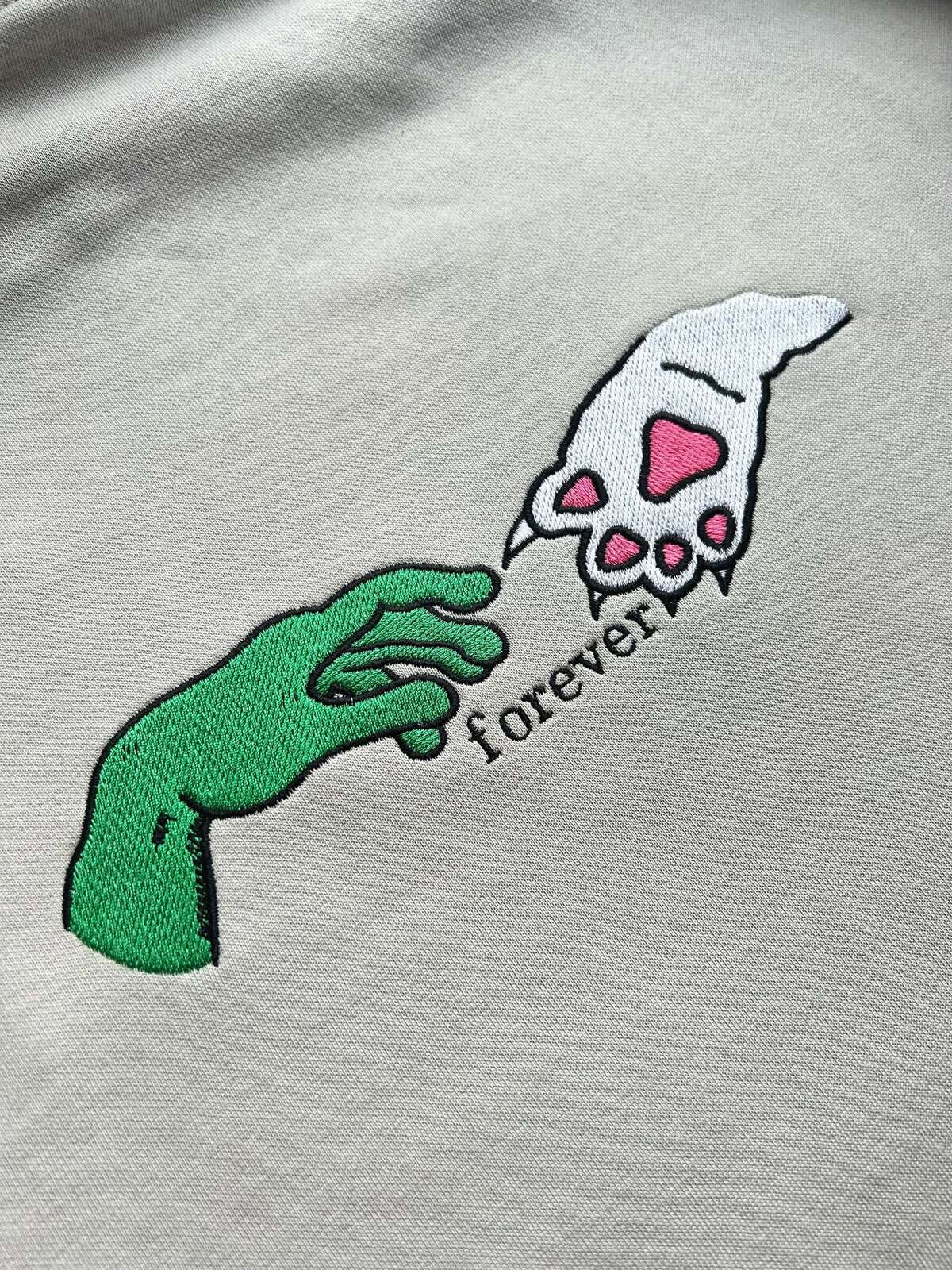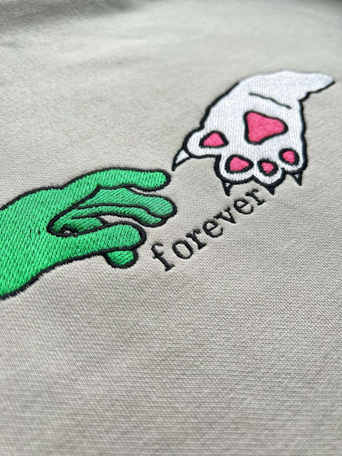 Evcil Hayvan ve İnsan El Nakış Işleme Örme Hoodie.