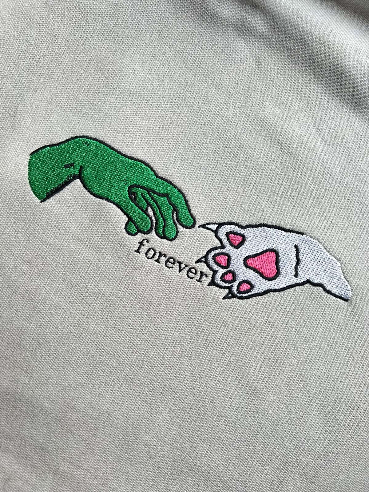 Evcil Hayvan ve İnsan El Nakış Işleme Örme Sweatshirt.