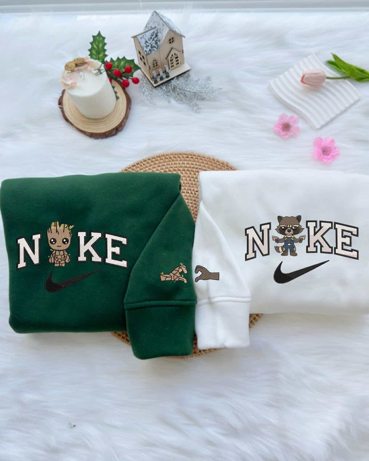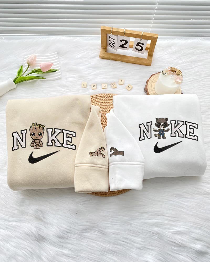 I am Groot ve Roket Rakun Çift Nakış Işleme Örme Hoodie.