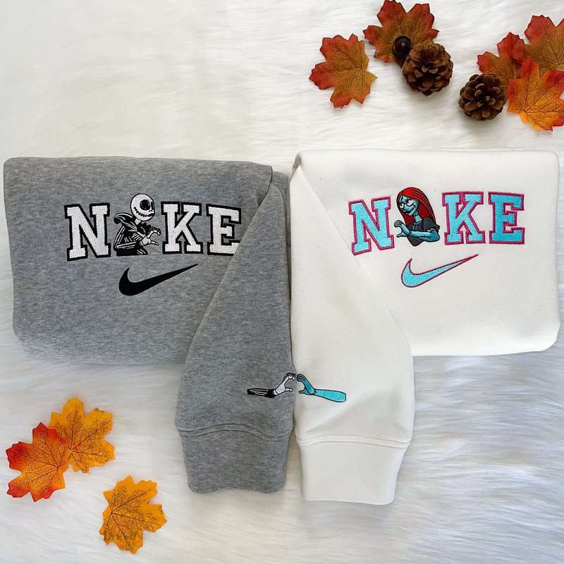 Jack ve Sally Çift Nakış Işleme Örme Sweatshirt.