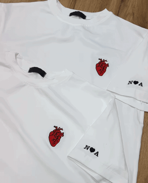 Kırmızı Kalp Nakış İşleme İşleme T shirt