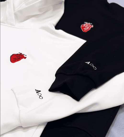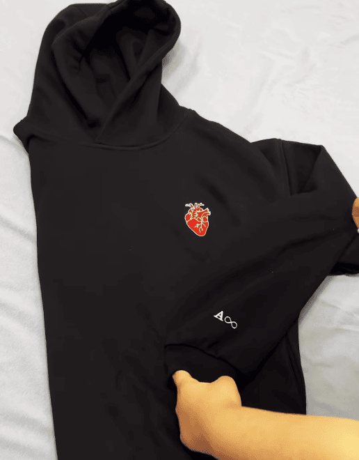 Kırmızı Kalp Nakış İşleme Örme Hoodie.