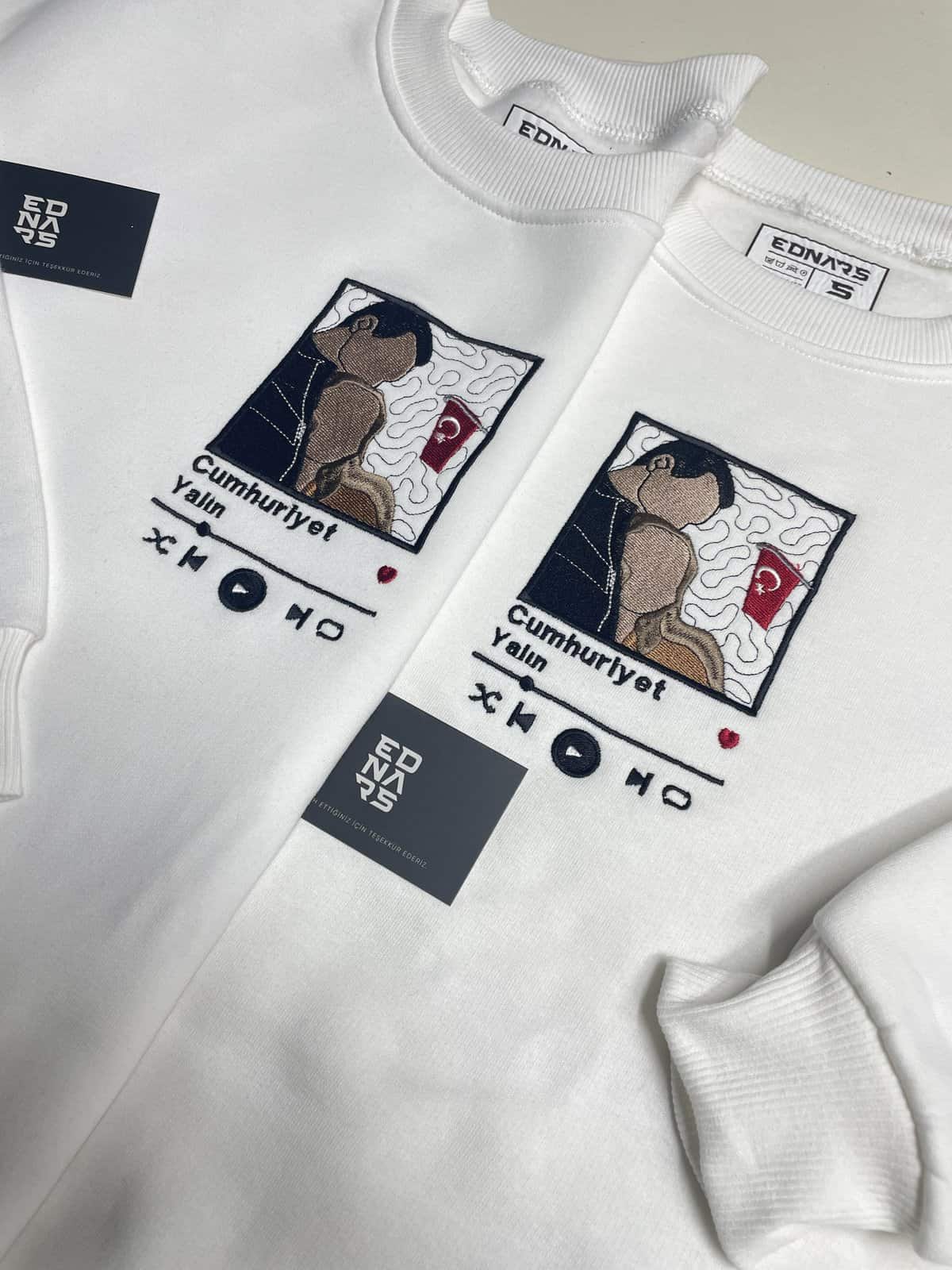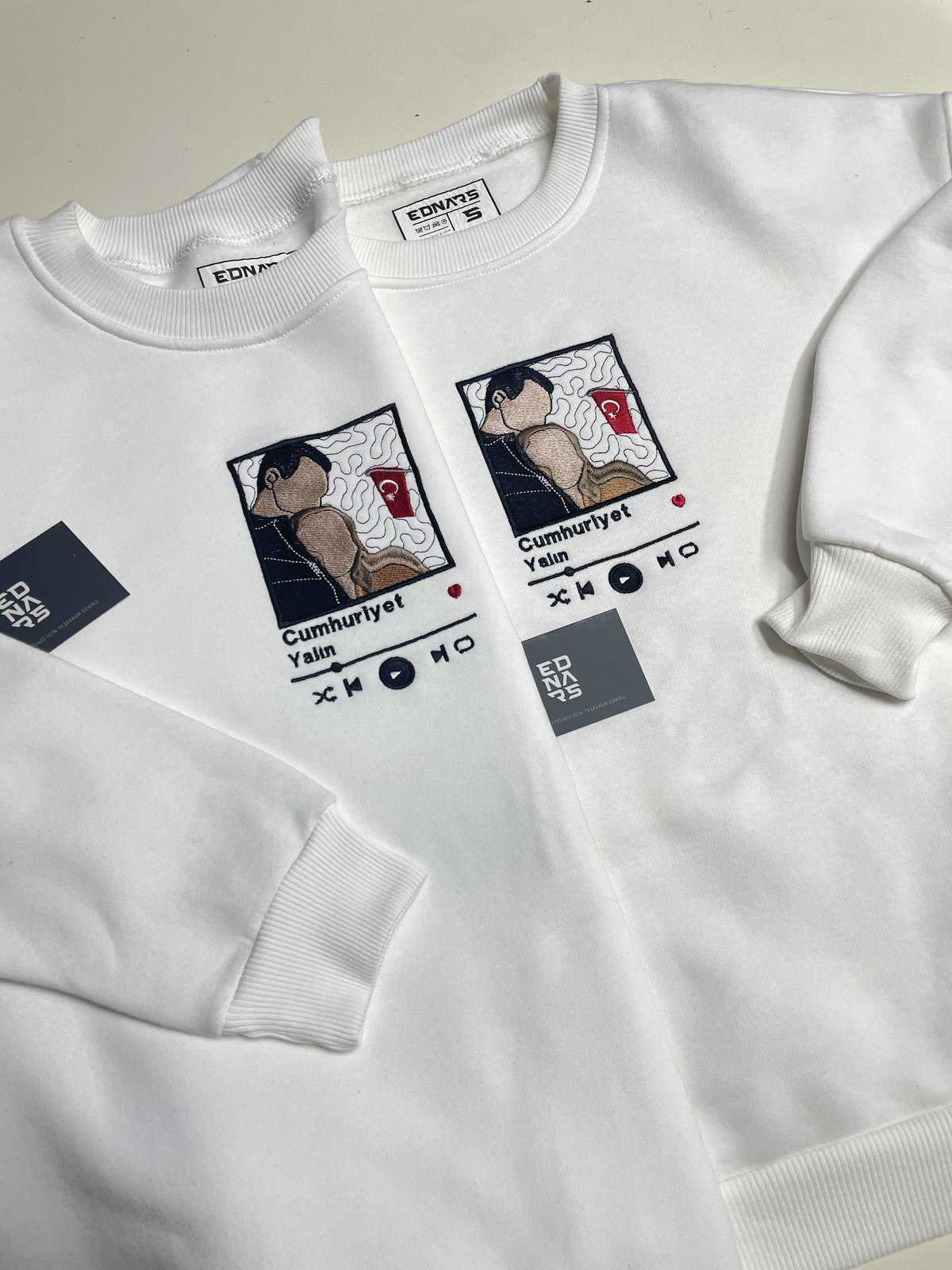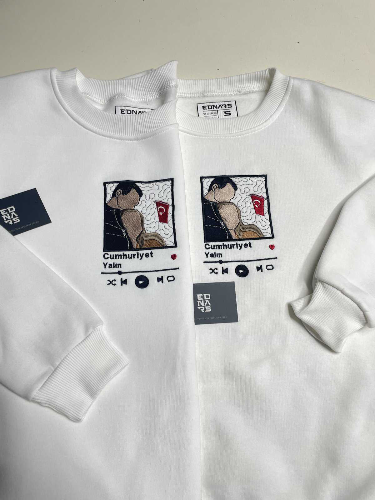 Kişiye Özel Fotoğraf ve Şarkı Nakış İşleme Örme Sweatshirt.