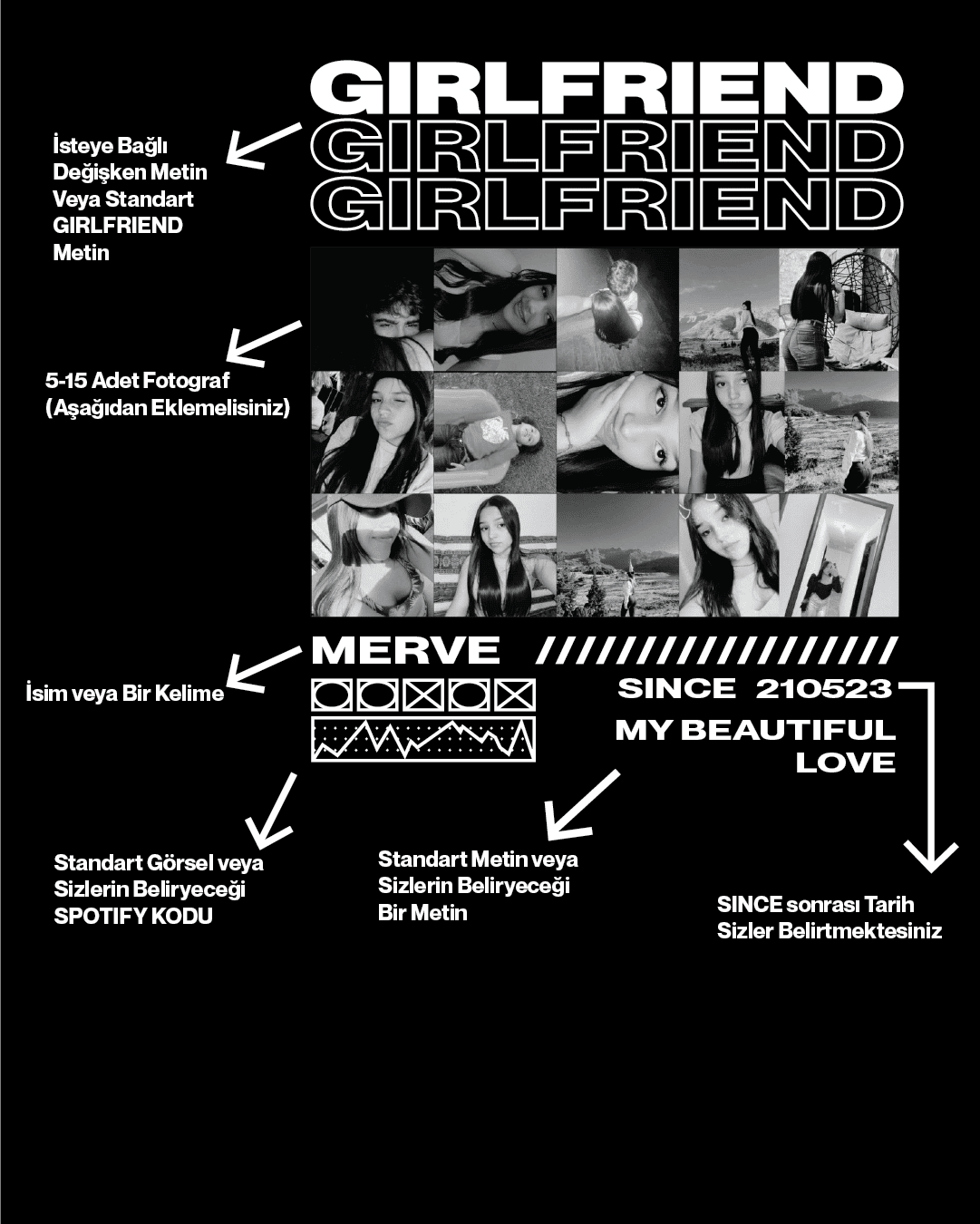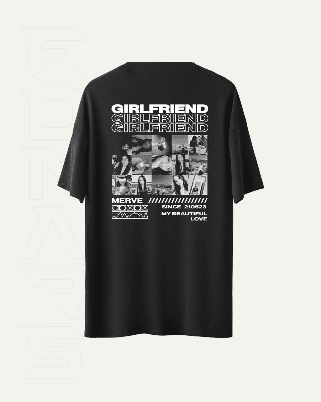 Kişiye Özel Fotoğraflı Girlfriend veya Özel Metin Baskılı Nakış Işleme T shirt