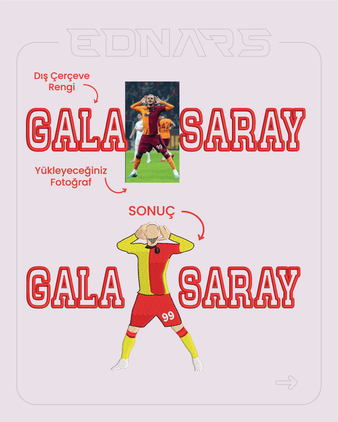 Kişiye Özel Taraftar Gala(x)saray Fotoğraf Nakış İşleme Örme Sweatshirt.