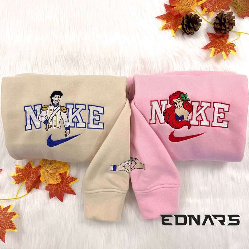 Küçük Deniz Kızı ve Prens Çift Nakış Işleme Örme Hoodie.