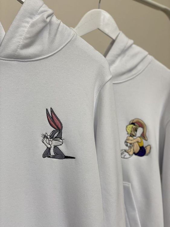 Looney Tunes Lola ve Bugs Çift Nakış Işleme Örme Hoodie.