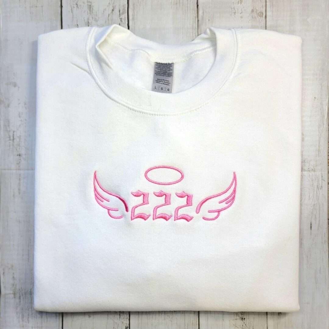 Melek Numarası Nakış Işleme Örme Sweatshirt.