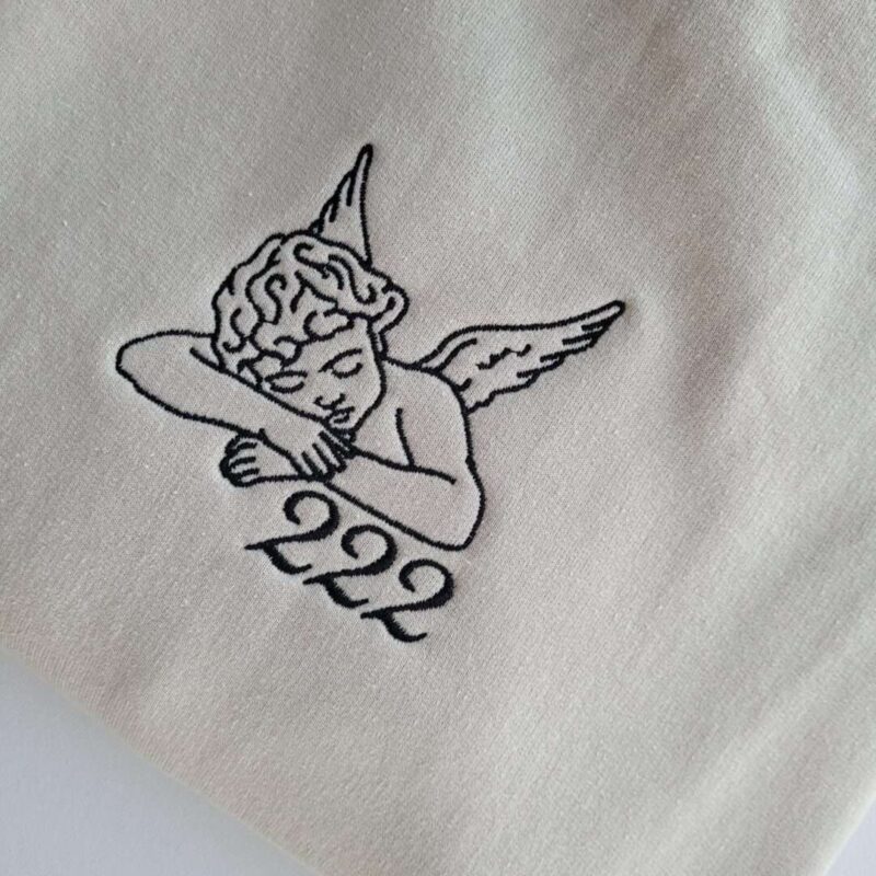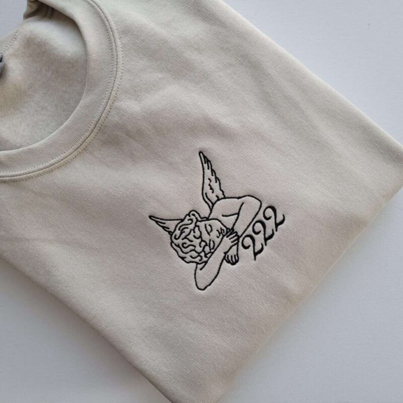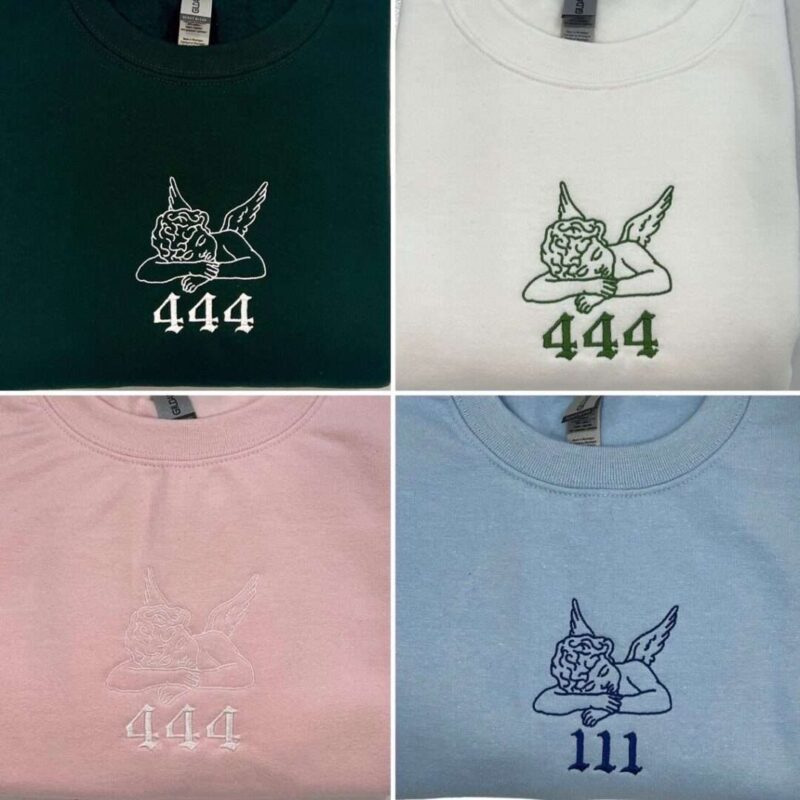 Melek Numarası Nakış Işleme Örme Sweatshirt.