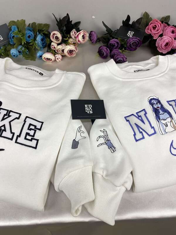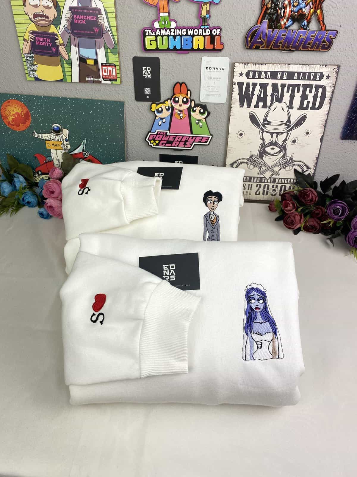 Ölü Gelin Emily ve Victor Çift Nakış Işleme Örme Sweatshirt.