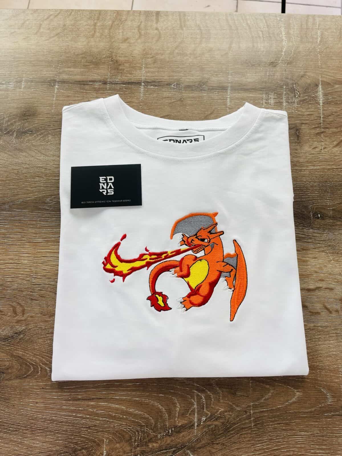 Pokemon Charizard Nakış Işleme Örme Sweatshirt.
