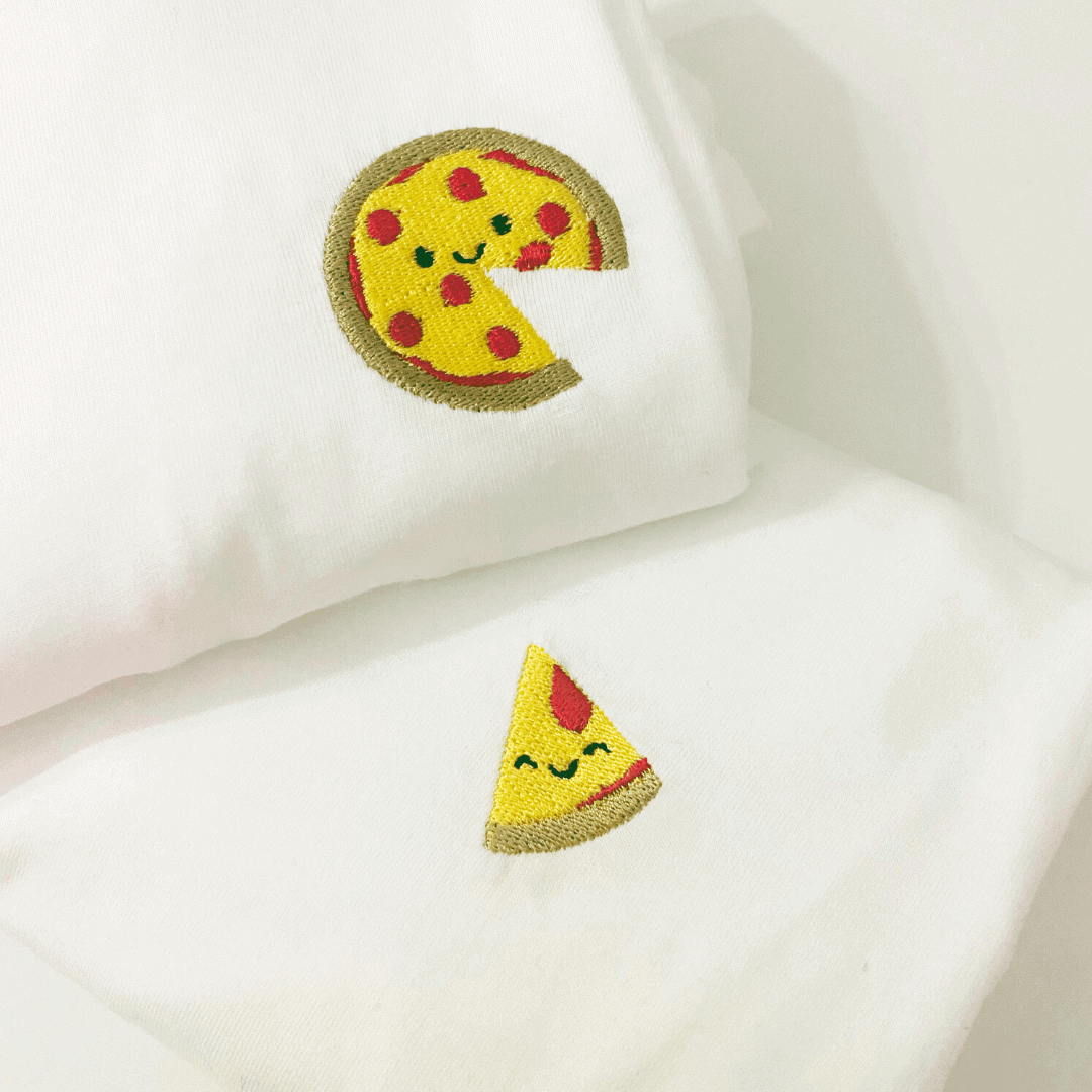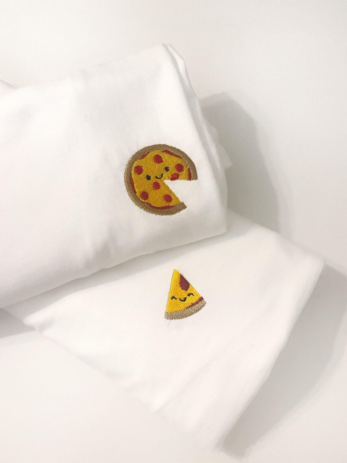 Sevimli Aşk Dolu Pizza Çift Nakış Işleme T shirt