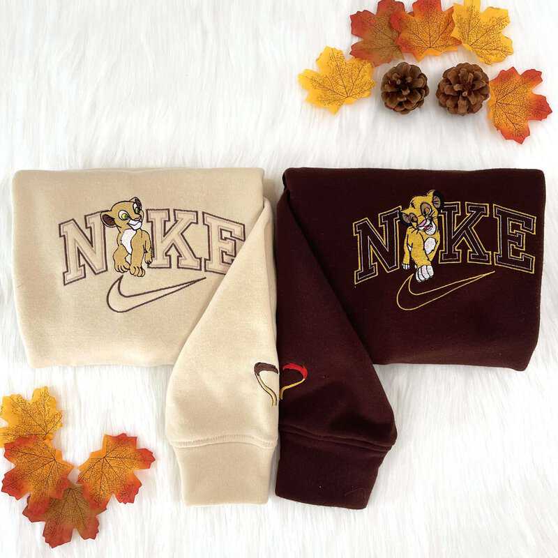 Simba ve Nala Çift Nakış Işleme Örme Sweatshirt.
