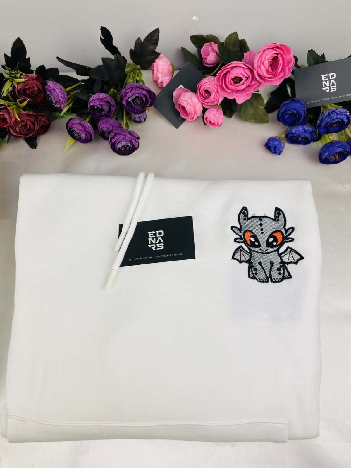 Siyah Ejderha Dragon Nakış Işleme Örme Hoodie.