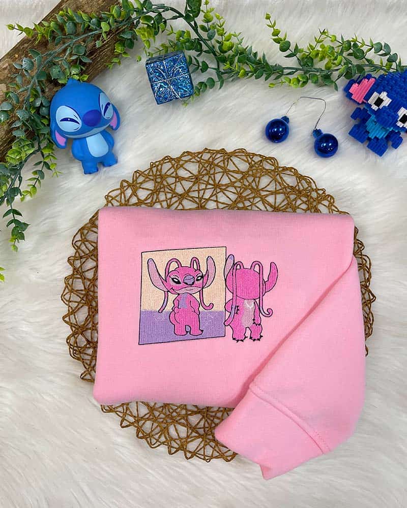 Stitch ve Angel Çift Nakış Işleme Örme Sweatshirt.