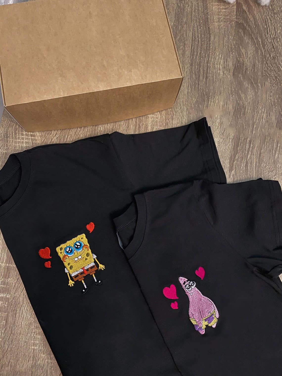 Sünger Bob Patrick Nakışlı Çift Kombin T shirt