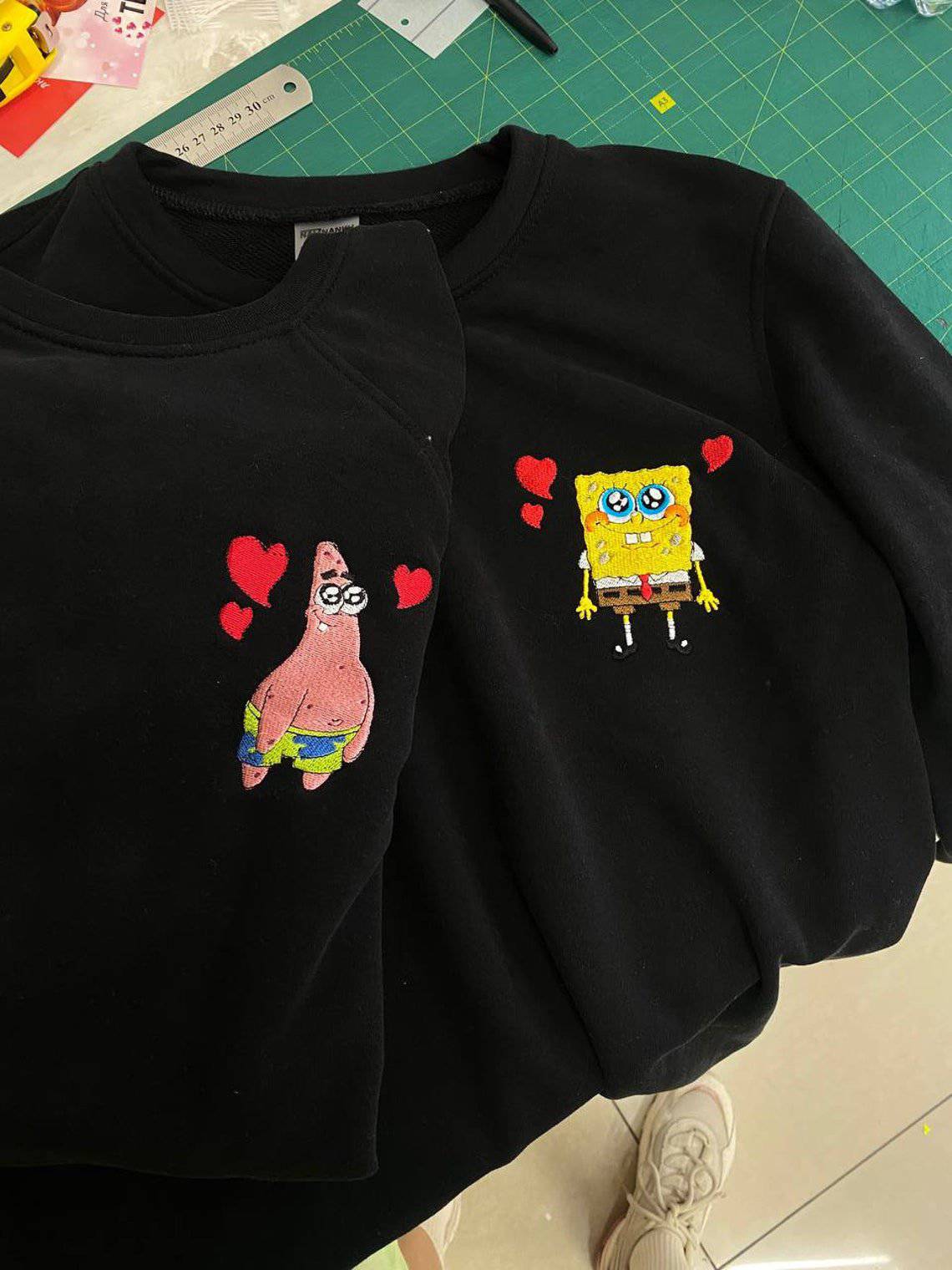 Sünger Bob Patrick Nakışlı Çift Kombin Sweatshirt.