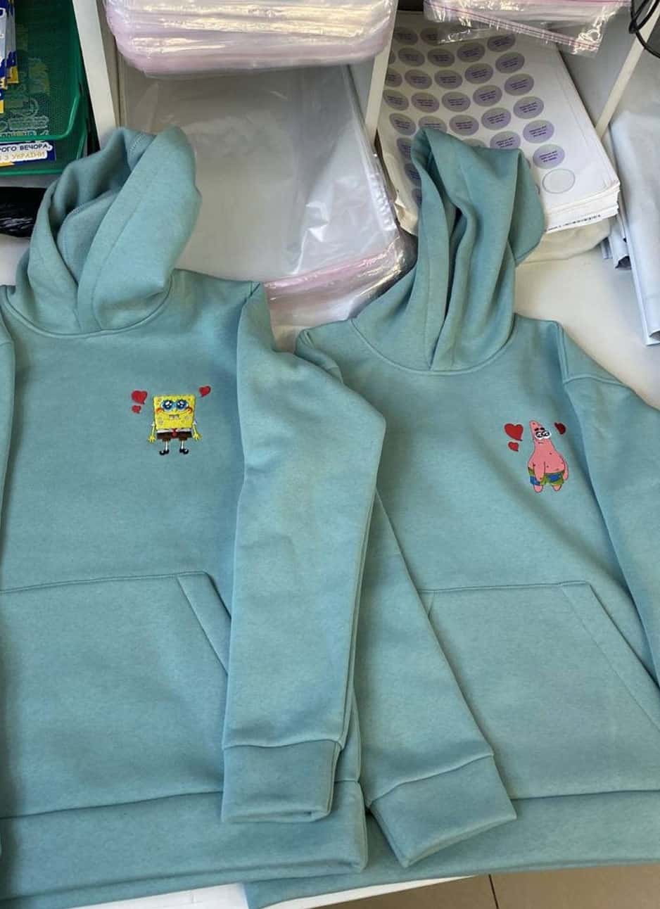 Sünger Bob Patrick Nakışlı Çift Kombin Hoodie.