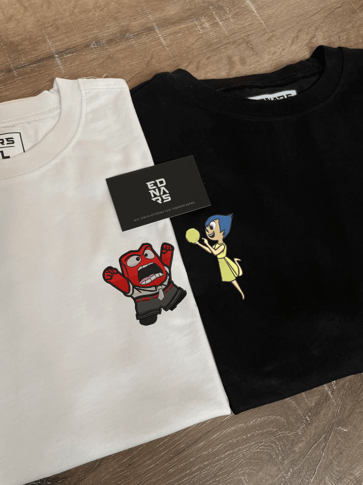 Ters Yüz Öfke ve Neşeli Çift Nakış Işleme T shirt