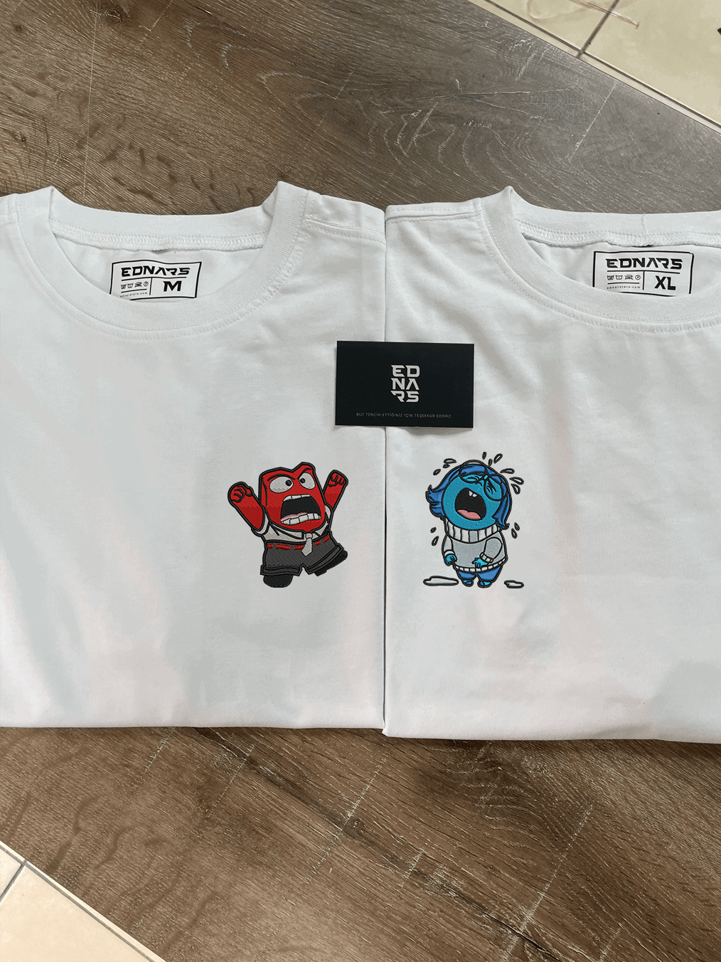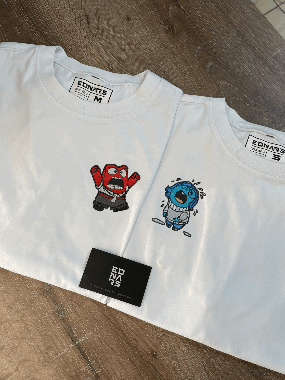Ters Yüz Öfke ve Üzüntü Çift Nakış Işleme T shirt