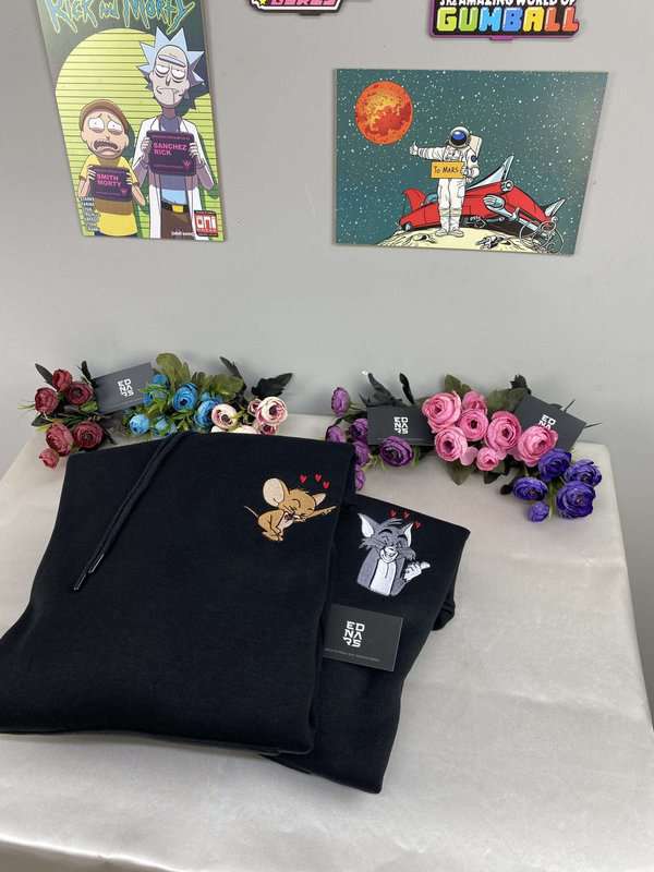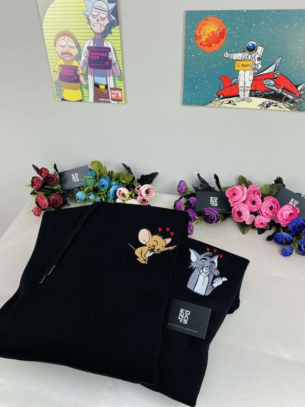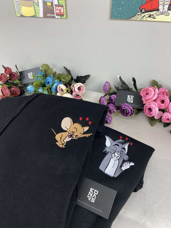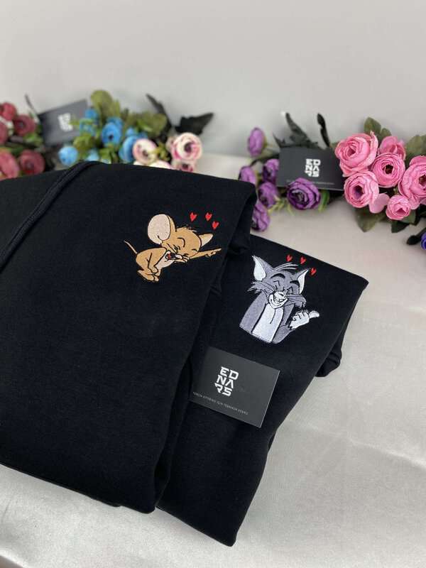 Tom ve Jerry Çift Nakış Işleme Örme Hoodie.
