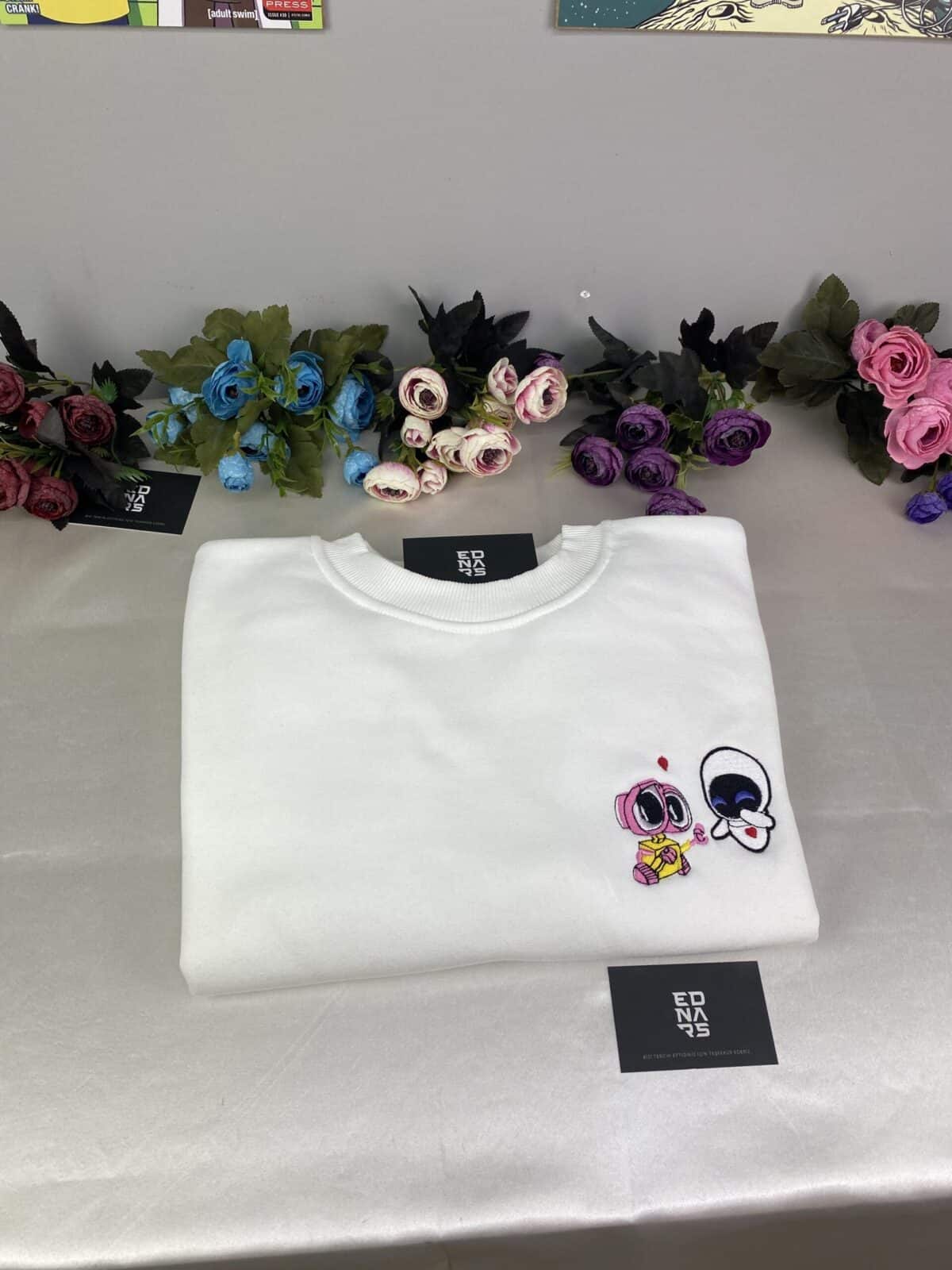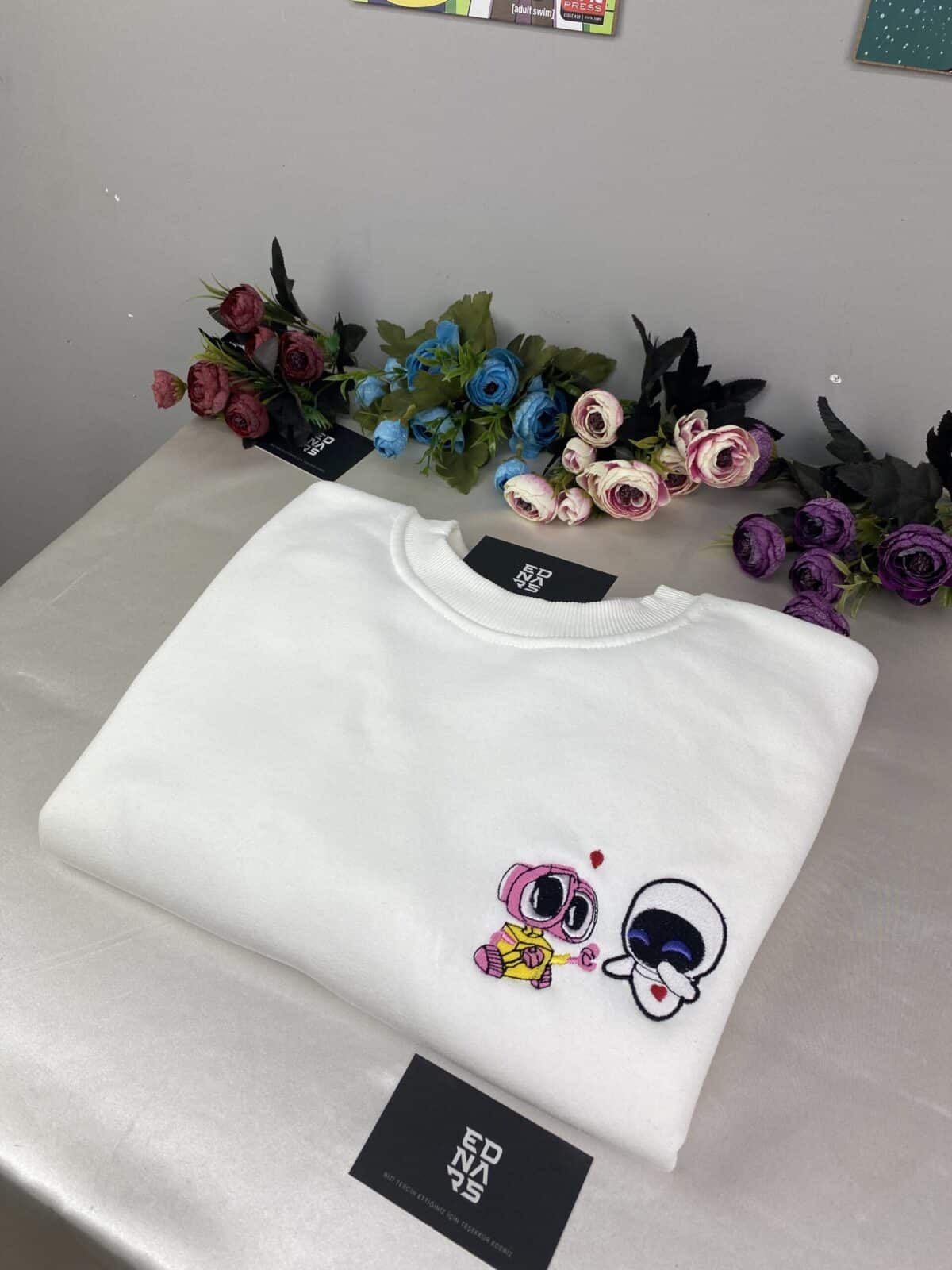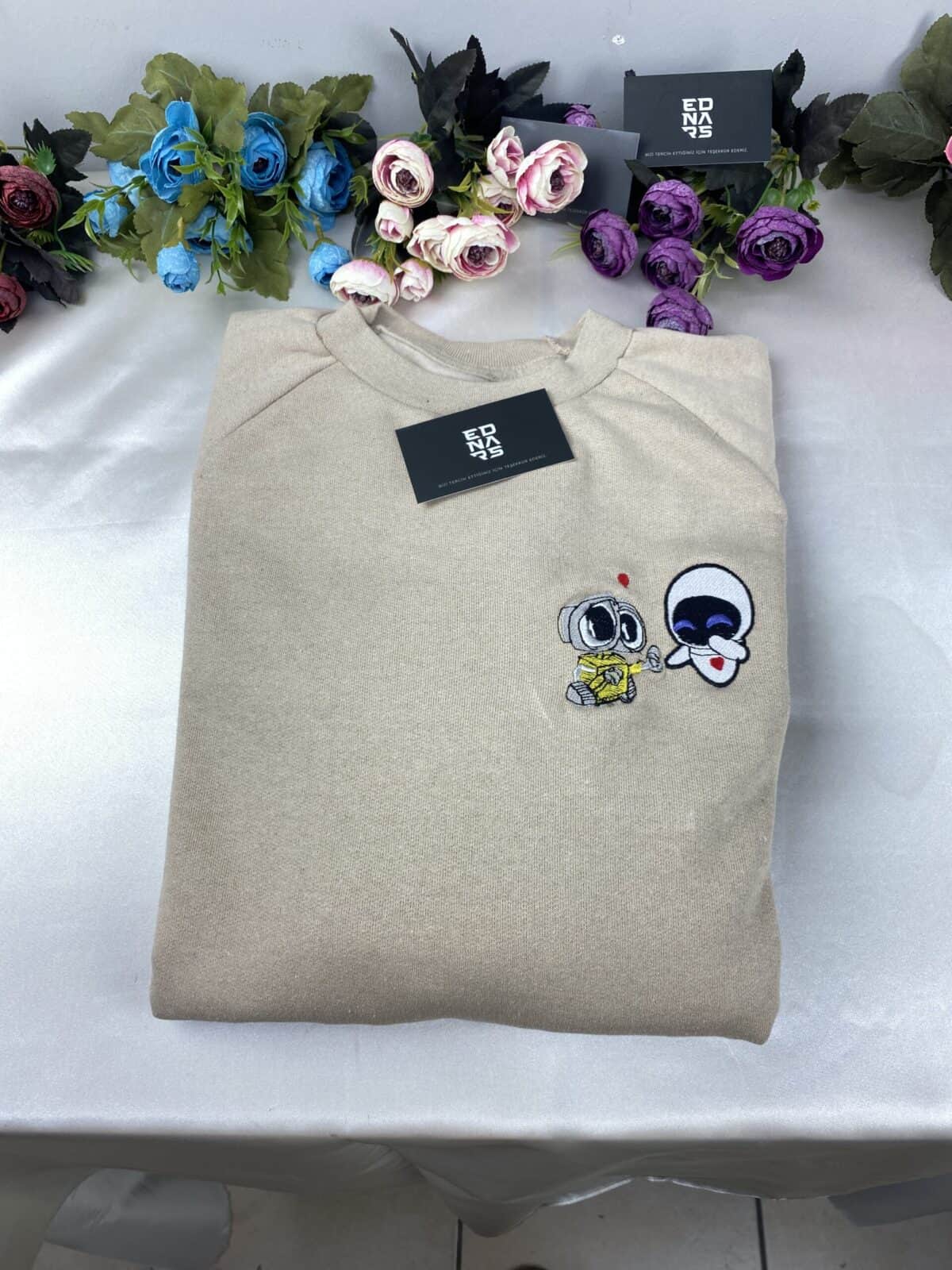 Walle ve Eva Kalp Nakış İşleme Örme Sweatshirt.