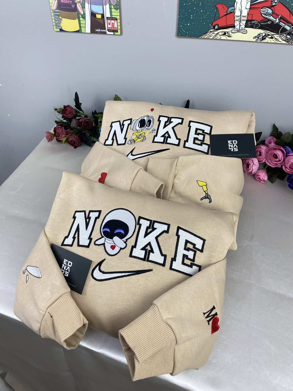 Walle ve Eva Çift Nakış Işleme Örme Hoodie.