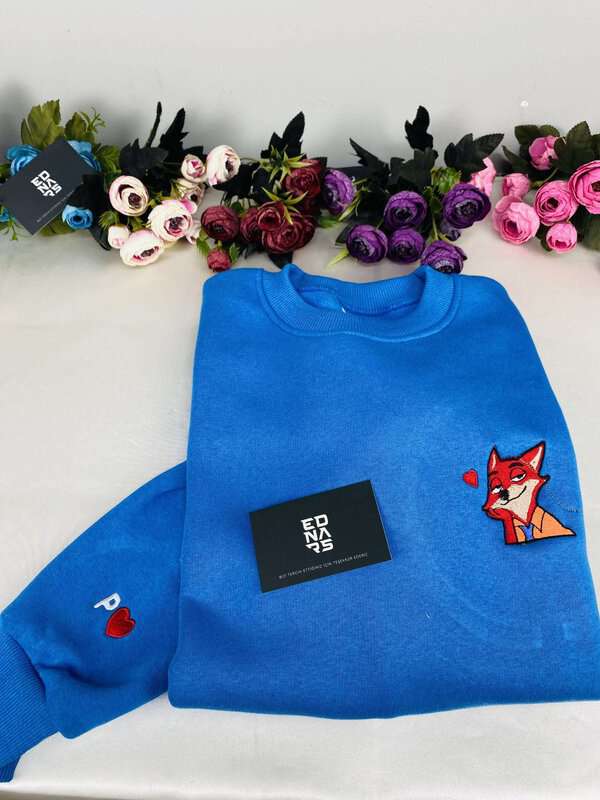 Zootropolis Tilki Nick ve Tavşan Judy Çift Nakış Işleme Örme Sweatshirt.